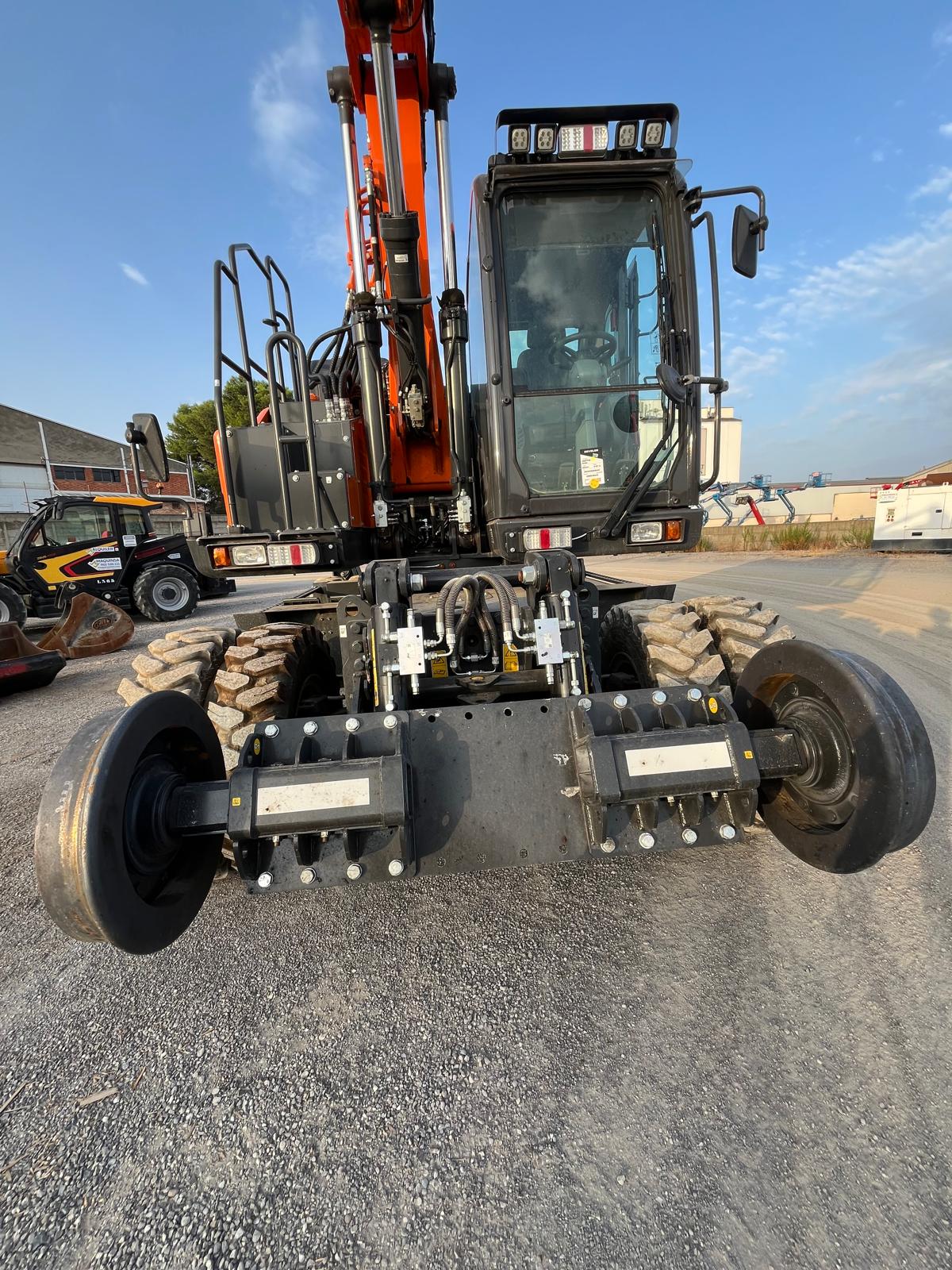 Hemos adaptado la excavadora para uso ferroviario mediante un sistema bivial / Diploris multivía, compatible con distintos anchos de vía.